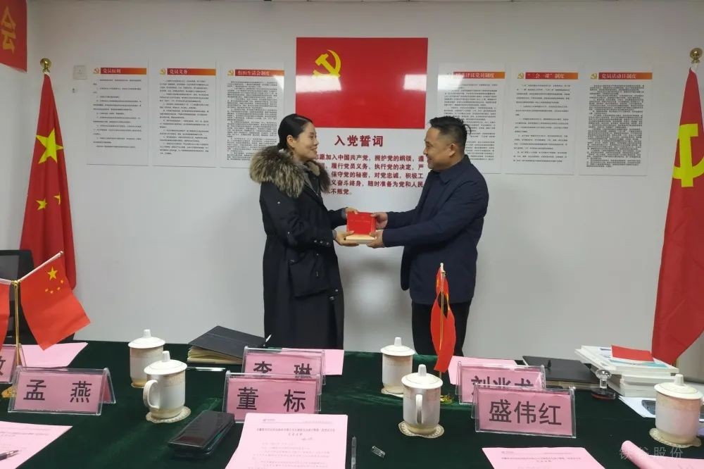 隨后,紅楓社區黨支部書記李琳同志向安徽鐵谷信息科技股份有限公司黨支部進行授牌并贈送黨報書刊。