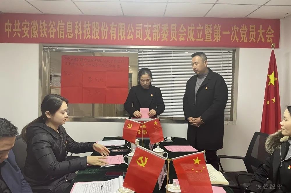 緊接著,召開安徽鐵谷信息科技股份有限公司黨支部第一次黨員大會,選舉首屆支部書記。全員奏唱《中華人民共和國國歌》后,則宣布候選人名單,進入投票選舉環節。