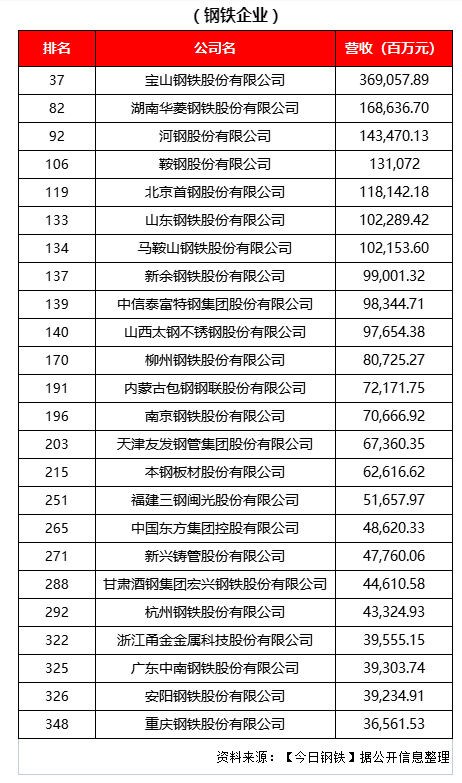 值得注意的是,在今年的排名中,有三家鋼鐵企業在過去一年中表現出色,其排名相比上一年有所提升: 河鋼股份有限公司位列第92位,較上一年上升了2個名次; 中信泰富特鋼集團股份有限公司位列第139位,較上一年躍升了5個名次; 而浙江甬金金屬科技股份有限公司位列第322位,較上一年躍升了整整62個名次。 據了解,此次中國上市公司500強的總營業收入達到了驚人的65.8萬億元人民幣,凈利潤更是達到了4.7萬億元。這些企業的年營收門檻也相當高,接近237億元。 鋼鐵企業在《財富》中國上市公司500強排行榜中的出色表現不僅反映了鋼鐵行業的實力,也彰顯了中國制造業的崛起。展望未來,我們期待這些優秀的鋼鐵企業能夠繼續保持穩健發展,為中國經濟的繁榮做出更大的貢獻。