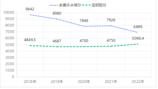 粗鋼產(chǎn)量是衡量鋼鐵企業(yè)實力的重要指標(biāo)之一。寶鋼股份作為寶武的鋼鐵旗艦,近年來不斷擴大產(chǎn)能。目前,寶鋼股份目前擁有上海寶山、武漢青山、湛江東山、南京梅山四個主要制造基地,2022年寶鋼股份粗鋼產(chǎn)量為5096.4萬噸。 與寶鋼股份相比,安賽樂米塔爾2022年粗鋼產(chǎn)量達6889萬噸。作為全球第二大鋼鐵生產(chǎn)商,安賽樂米塔爾在16個國家擁有煉鋼業(yè)務(wù),包括37個綜合鋼廠和小型鋼廠煉鋼設(shè)施。盡管近年來其產(chǎn)量有所下滑,且去年以來,其子公司也頻現(xiàn)裁員停產(chǎn)消息,但該公司并未放棄擴張計劃,其實力依然不容小覷。近年來,寶鋼股份通過兼并重組和海外建廠不斷擴大自身實力。 過去的一年,寶鋼股份積極在國內(nèi)進行投資和并購整合。2023年12月28日,山東省人民政府與中國寶武鋼鐵集團有限公司簽署了合作框架協(xié)議,標(biāo)志著寶武正式戰(zhàn)略投資山鋼集團。通過這次合作,寶鋼股份將持有山鋼集團日照公司48.6139%股權(quán),進一步鞏固了其在鋼鐵行業(yè)的領(lǐng)先地位。 不僅如此,公司在還加大了海外營銷網(wǎng)絡(luò)的布局,并啟動了首個海外全流程鋼鐵生產(chǎn)基地的建設(shè)。該基地建成年設(shè)計產(chǎn)能250萬噸直接還原鐵、150萬噸厚板,預(yù)計將于2026年底投入運營。 而安賽樂米塔爾近年來也在低碳轉(zhuǎn)型煉鋼項目上投入大量資金,并矢志于在2050年前實現(xiàn)“凈零煉鋼”的目標(biāo)。公司在西班牙的阿斯圖里亞斯(Asturias)鋼廠與當(dāng)?shù)毓I(yè)工程公司薩拉冶(Sarralle)簽署了一份合同,將在希洪(Gijon)建造一座年產(chǎn)能為110萬噸的電弧爐,作為該公司西班牙運營區(qū)低碳轉(zhuǎn)型計劃的一部分。 2022年10月,安賽樂米塔爾新日鐵(AMNS)印度公司曾經(jīng)宣布投資約6億盧比(720萬美元),將鋼鐵廠的產(chǎn)能提高到1500萬噸。據(jù)報道,這項投資用于安裝新的煉鋼技術(shù),例如使用新型設(shè)備等。 寶鋼股份正在實施低位擴張戰(zhàn)略,通過并購整合實現(xiàn)企業(yè)的快速成長,據(jù)公司2023年一季度業(yè)績說明會上指出,寶鋼將繼續(xù)加大對外聯(lián)合重組以及海外項目的運營,并公布了寶鋼股份的發(fā)展目標(biāo):2024年爭取8000萬噸,2027年爭取1億噸,包含控股或參股等形式。 而安賽樂米塔爾董事長Lakshmi Mittal,近期于2024屆古吉拉特邦全球活力峰會(VGGS)發(fā)表演講,宣布該公司將于2029年建成全球最大單體鋼鐵廠,將于2026年完成首階段建設(shè),并于2029年簽署諒解備忘錄(MoU)以順利完成第二階段。經(jīng)擴建,哈吉拉鋼廠將成為全球最大單體鋼鐵廠,擁有近2400萬噸的年產(chǎn)能。該項目第一階段已于2021年啟動,目前處于建設(shè)階段,預(yù)計將于2026年投入生產(chǎn)。綜合世界鋼鐵協(xié)會及企業(yè)公開的數(shù)據(jù),兩個鋼企2018年以來粗鋼產(chǎn)量數(shù)據(jù)如下,: 安賽樂米塔爾2018年9642萬噸,2019年為8980萬噸,2020年為7846萬噸,2021年為7926萬噸,2022年為6889萬噸。 寶鋼股份2018年產(chǎn)鋼4849.5萬噸,2019年為4687萬噸,2020年4700多萬噸,2021年約4750萬噸,2022年為5096.4萬噸。 綜合以上來看,安賽樂米塔爾的產(chǎn)量數(shù)據(jù)基本屬于逐年下降,寶鋼股份粗鋼產(chǎn)量基本呈現(xiàn)上升態(tài)勢。二者已然呈現(xiàn)此消彼長的狀態(tài)。 如今,寶鋼股份和安賽樂米塔爾都是大動作頻頻。而在寶武集團這個大家庭里,寶鋼股份可謂是勢頭迅猛,通過技術(shù)創(chuàng)新和海外擴張來提高產(chǎn)能和市場份額。而相比于目前5096.4萬噸的粗鋼產(chǎn)量,如寶鋼股份能在2027年達到億噸級規(guī)模且正常轉(zhuǎn)化為產(chǎn)量,則幾乎相當(dāng)于在現(xiàn)有基礎(chǔ)上,再造了一個寶鋼股份;而安賽樂米塔爾雖然面臨著產(chǎn)量下滑的挑戰(zhàn),但也是積極應(yīng)對,通過轉(zhuǎn)型計劃和擴大產(chǎn)能來保持競爭力。在未來幾年里,這兩家企業(yè)都將是全球鋼鐵行業(yè)的重要力量。