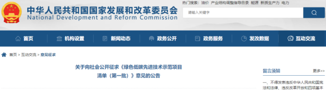 3月19日,國(guó)家發(fā)展改革委發(fā)布向社會(huì)公開(kāi)征求《綠色低碳先進(jìn)技術(shù)示范項(xiàng)目清單(第一批)》意見(jiàn)的公告。