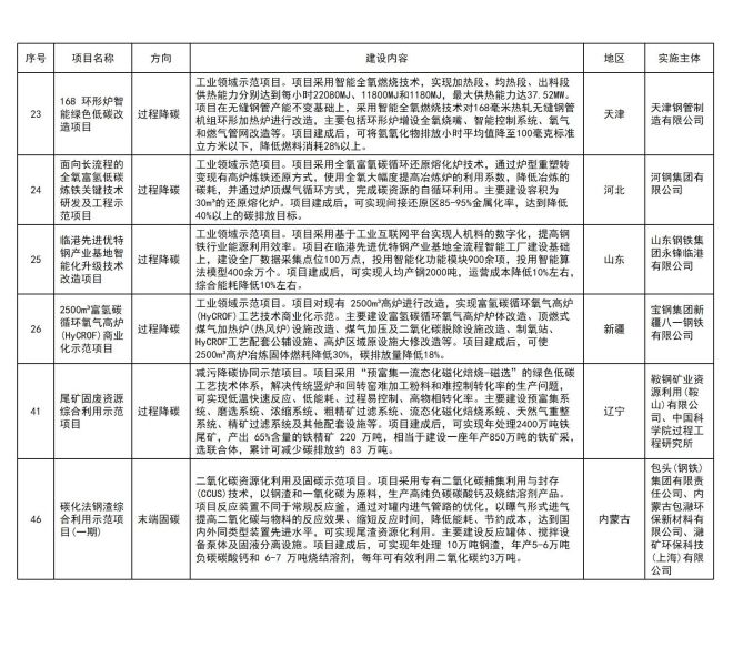 公告顯示,第一批綠色低碳先進(jìn)技術(shù)示范項(xiàng)目清單,共納入47個(gè)項(xiàng)目。涉及鋼鐵企業(yè)具體情況如下: