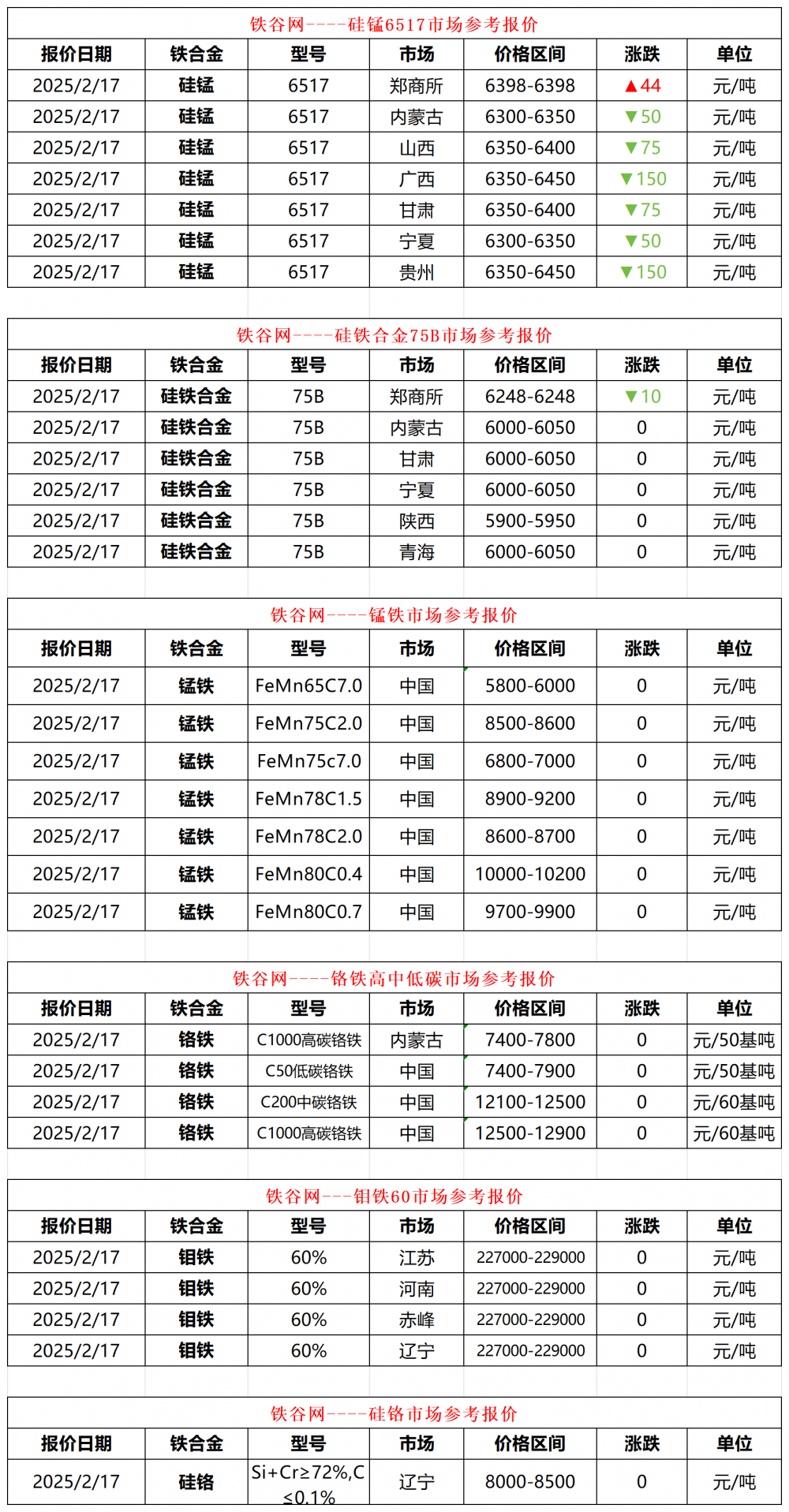 2月17日 鐵合金行情報價匯總